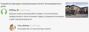 Требовалось сделать визуализацию дома по картинке из интернета. Ирина подошла очень ответственно и профессионально, т.к. пришлось практически делать новый проект, предложила несколько вариантов и цветов в экстерьере, в итоге сделали полноценный эскизный проект). Результатом, а главное подходом к своей работе и клиенту, которые предложила Ирина, полностью доволен. Спасибо за качественный сервис.